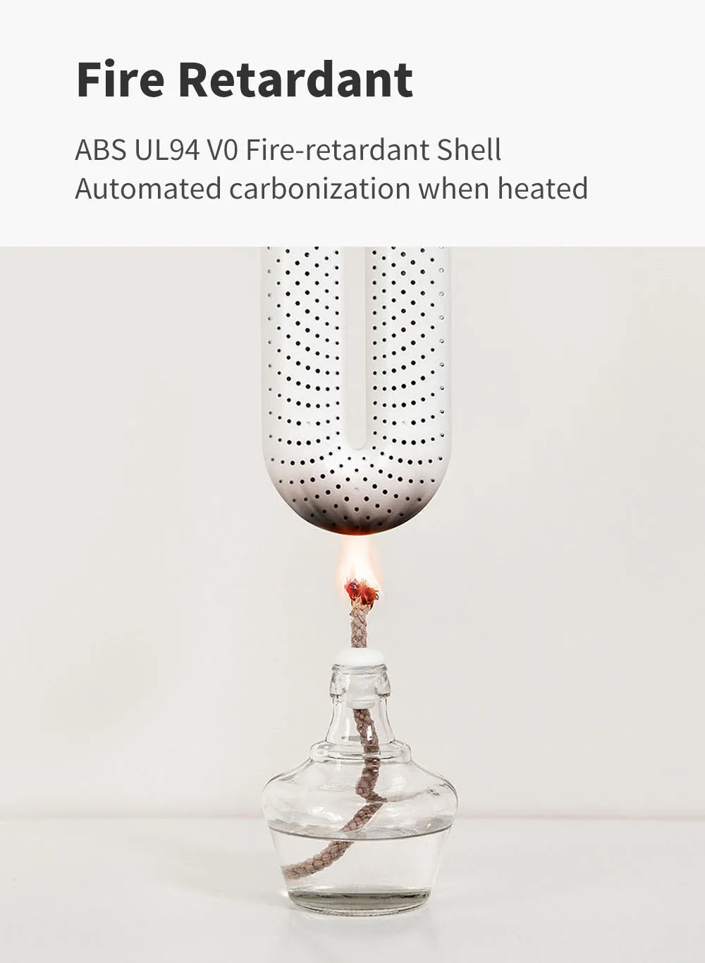 The shoe dryer is made of ABS UL94 V0 fire-retardant materials. Compression and high temperature resistance, not easy to burn and deform during use. The product size of the shoe dryer is the size of the palm of your hand. It can be easily stored in suitcases or carry-on bags.